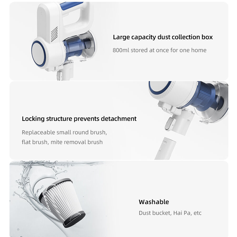 - 長期的なメンテナンスコストが低く、費用対効果に優れる コスト意識の高いB2B企業にとって、コード式掃除機は顕著な経済的利点を提供します。コードレスモデルと比較してシンプルな構造により生産コストが削減され、大量購入者にとって重要なより競争力のある卸売価格を実現できます。耐久性に優れたACモーターにより使用寿命が延び、交換頻度が最小限に抑えられます。コードレス掃除機のように1〜2年ごとに高価なバッテリー交換を必要としないため、このような継続的な費用が発生せず、長期的なメンテナンスコストを削減できます。コード式掃除機の0.8Lダスト容器は連続使用と簡単な空けやすさのバランスを実現しており、着脱可能な設計によりメンテナンスが容易になり、クライアント側チームの労務費も低減されます。