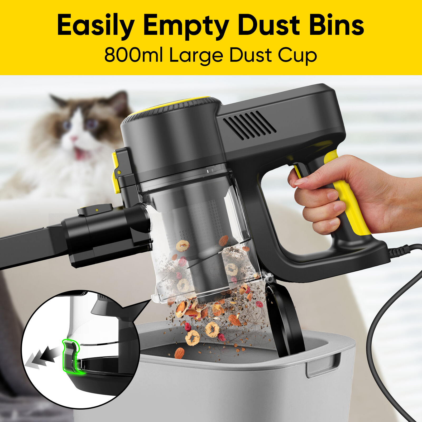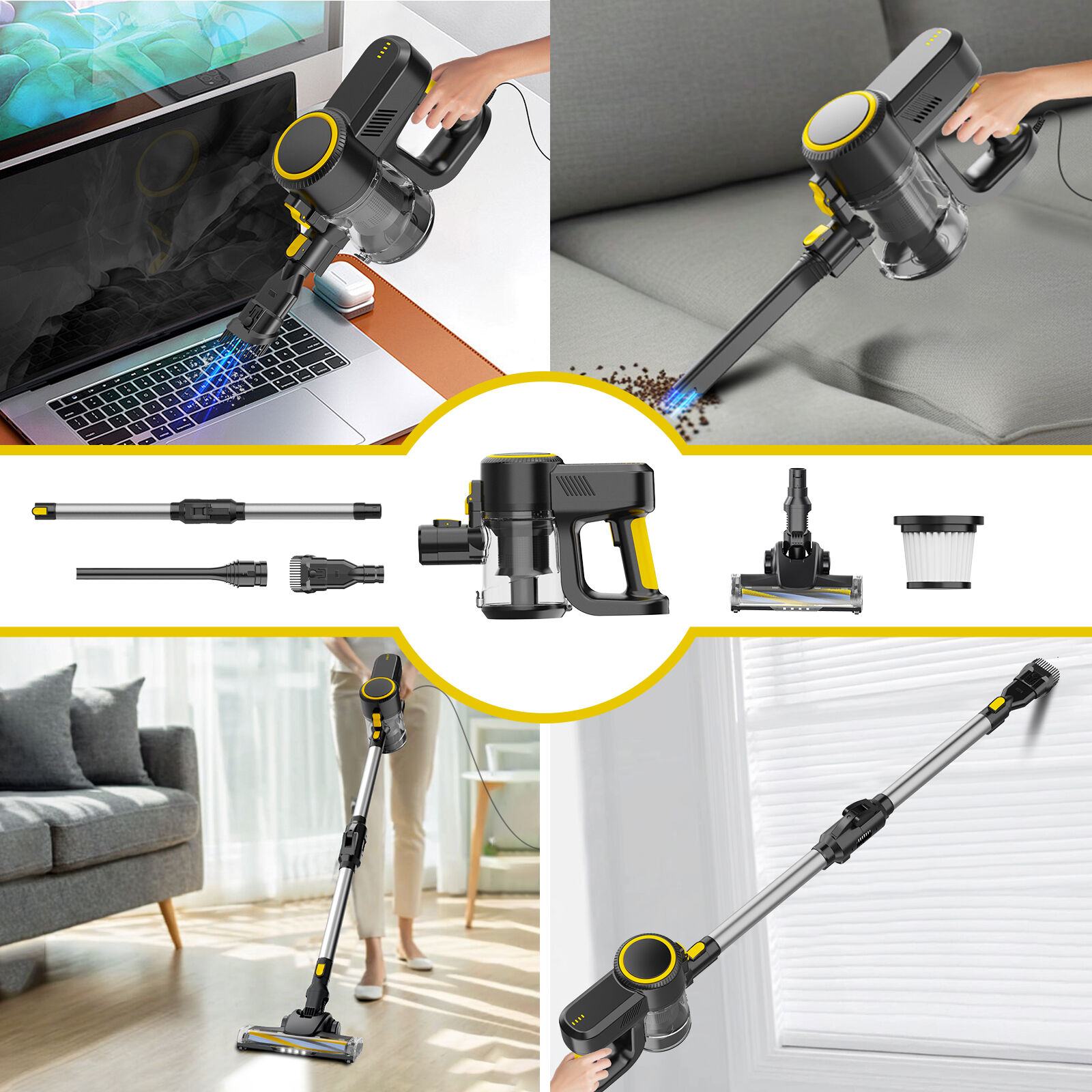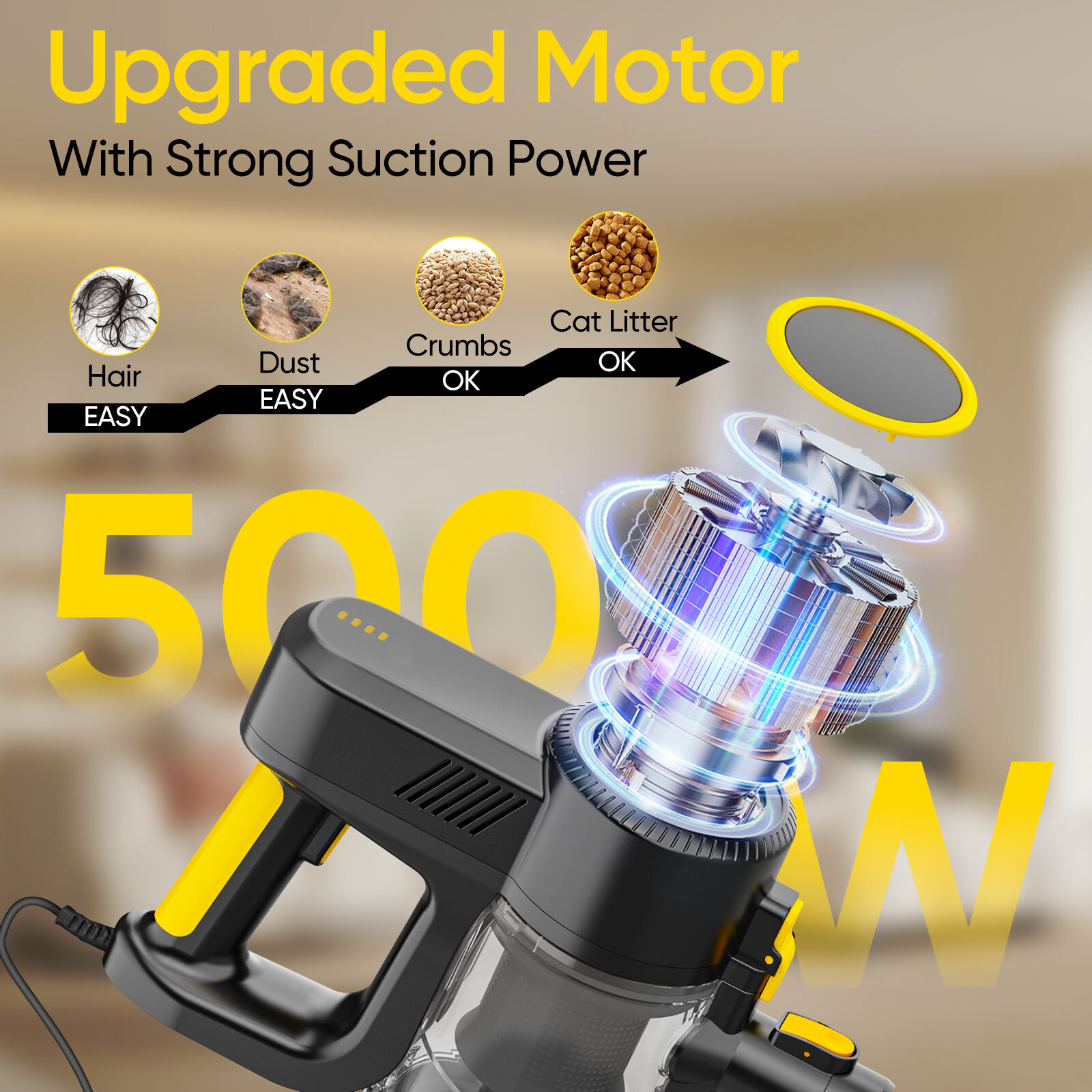 The Y3003 corded vacuum delivers 500W power and 15KPa strong suction, powered by an AC motor for consistent performance. It has a 0.8L dust cup, 5m power cord for unrestricted cleaning, and a lightweight 2.16KG body for easy maneuvering. Versatile accessories (crevice nozzle, 2-in-1 brush) and foldable/straight tube packaging options ensure efficient cleaning and flexible shipping.